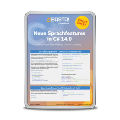 Das Cheat Sheet von DOTNET-Doktor Holger Schwichtenberg bietet einen kompakten Überblick über die wichtigsten Neuerungen in C# 14.0.